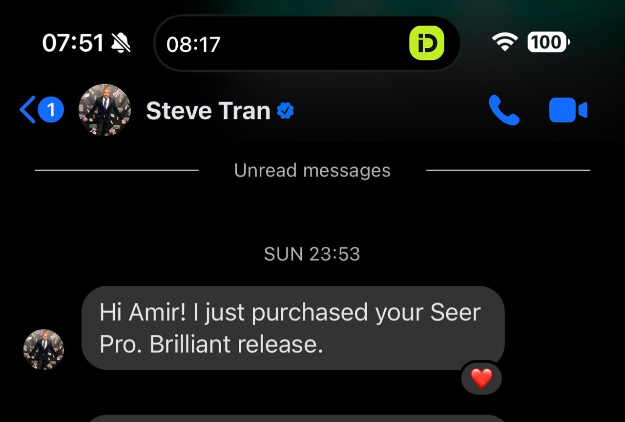 Amir is such a talented dude and his creations always create magical moments that go to the next level. Seer Pro is the ultimate weapon to peek just about anything. It's one of those "so good it's scary" type of effect and I know that talented magicians will all have some cool effects they create with it. Add the fact that Amir will keep adding new elements and features on a daily basis makes it an incredible tool.