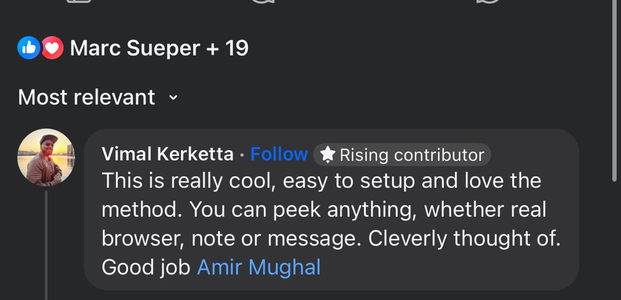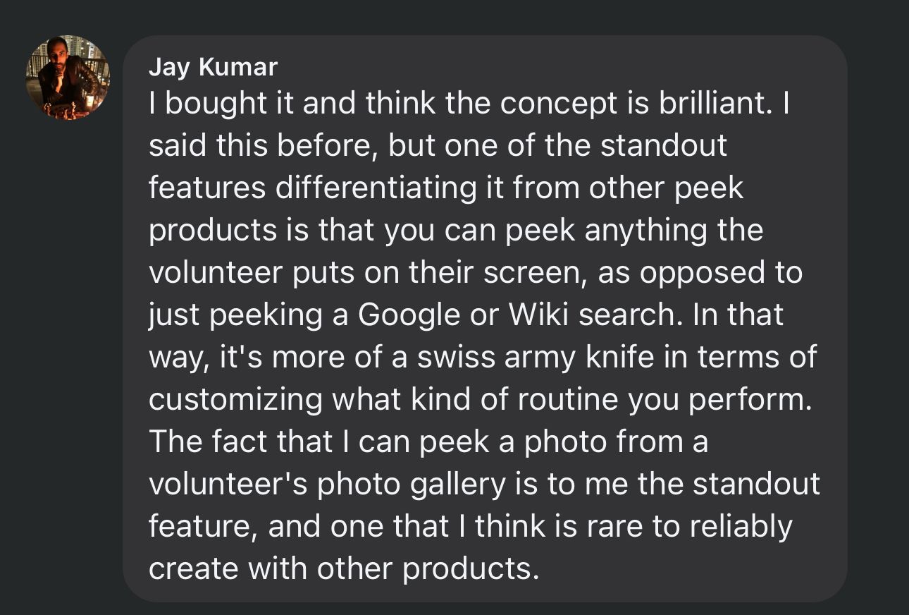 - Facebook Peek - They open Facebook and think of any recent post, comment, or friend from their feed. You reveal it with jaw-dropping accuracy.